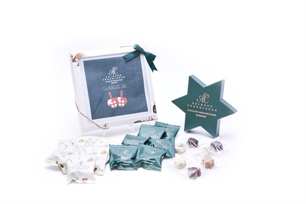 Julestjernen med 7 stk. dessertchokolade og 10 stk. juledragée.