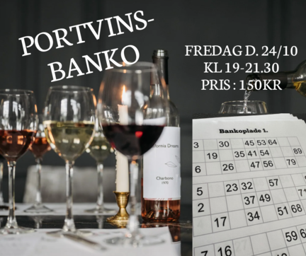 Vi spiller 3 runder banko og byder på et glas portvin til hver runde, samt lidt snacks og sødt.